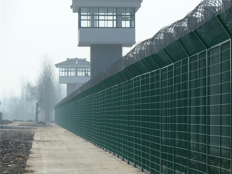 監獄護欄網現被廣泛應用在監獄,軍事基地等高安全場所。注:如果在監獄護欄網頂部加裝刀片刺絲、刀片刺繩后又很好的增強了安全防護性能。采用電鍍、熱鍍、噴塑、浸塑等防腐形式,具有很好的抗老化、抗曬、耐候等特點。其產品造型美觀、花色多樣,既起到圍欄作用,又起到美化作用。由于具有安全性高、防攀爬能力好,網片連接方式采用SBS緊扣件,有效防止人為的破壞性拆卸,橫向四道折彎加強筋,使網面強度大大增加。