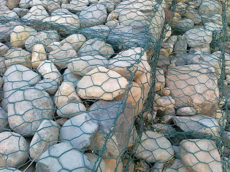 石籠網箱它是由重型六角網(分為鍍鋅石籠網和鉛絲石籠網)剪裁、折疊加工而成的鐵絲網箱籠,一般由4片重型六角網折疊組裝成的網箱,一片大的六角網折疊成長方體的4個大面,兩頭有兩小片的六角網,中間有隔板網片。